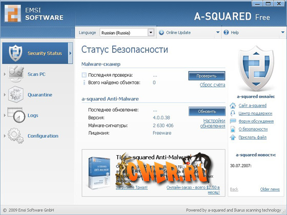 AVG Anti-Virus - новая версия известной антивирусной программы от чешских разработчиков для защиты ПК от опасных объектов и сетевых угроз. Программа блокирует вирусы, трояны, червей, шпионские программы, а модуль для борьбы с руткитами помогает избавиться от вредоносных процессов, маскирующих работу вирусов. Совместим с Windows Vista и Windows 7.