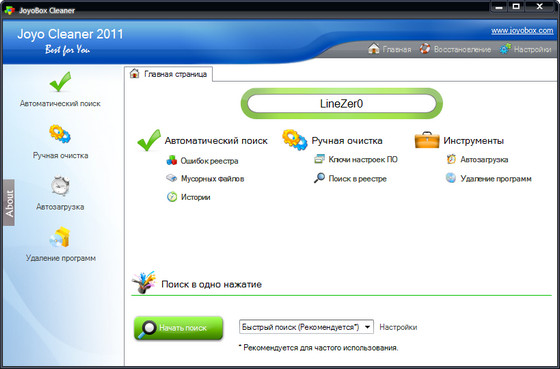 Joyobox Cleaner - мощная, но безопасная программа для очистки реестра, мусорных файлов, списков истории, а также владеющая рядом дополнительных возможностей. Отличный инструмент для ухода за Вашим компьютером! Многофункциональный, быстрый, безопасный и легкий в освоении!