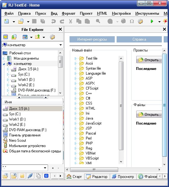 Вышла новая версия RJ TextEd - юникодового редактора со множеством возможностей для редактирования текста, html-документов, java-скриптов и т.д. Открытие множества документов в многовкладочном окне, подсветка и проверка синтаксиса, подсказки при вводе кода, закладки, неограниченное undo/redo, редактор css, html-превью, встроенный ftp-клиент, поддержка email, поддержка drag'n'drop, поддержка скинов и многое другое...