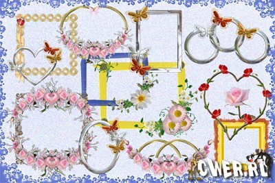 Многослойные свадебные фоторамки. Отключая или добавляя слои можно менять вид рамок на свой вкус.