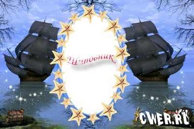 Красивая рамка с кораблями и ракушками для оформления фото с летнего отдыха
