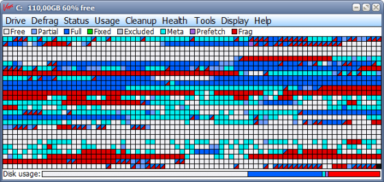 JkDefrag - дефрагментатор данных на носителях для Windows 2000/2003/XP/Vista (включая 64-битные ОС). JkDefrag при запуске автоматически дефрагментирует данные на носителе, с которого запущен. Несмотря на спартанский интерфейс (нет ни кнопочек, ни ниспадающих менюшечек) утилита отлично выполняет свои основные функции. JkDefrag работает с любыми типами носителей: накопители на жестких дисках, съемные накопители и Flash накопители. Как и у множества других коммерческих утилит для дефрагментации и оптимизации, алгоритм работы программы также использует стандартный API от Microsoft.