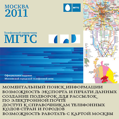 Электронная версия телефонного справочника ОАО МГТС «Москва 2011» содержит самую достоверную и актуальную информацию о более чем 160 тыс. государственных и коммерческих предприятиях Московского региона и более 3 млн телефонных номеров!