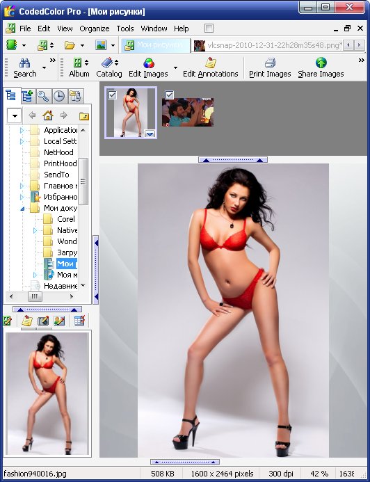 CodedColor PhotoStudio Pro - профессиональная версия фото просмотрщика и редактора, предназначенного для организации, редактирования, сравнения, корректирования, сортирования и печати цифровых изображений. Также программа позволяет изменять размер изображений, накладывать водяные знаки, аннотировать изображения, редактировать EXIF и IPTC данные цифровых фотографий и многое другое. Вы сможете переименовывать несколько изображений, удалять царапины, создавать панорамные фотографии, конвертировать RAW фотографии, отправлять изображения через Skype, накладывать водяные знаки на фотографии, корректировать цвета, запускать слайдшоу, конвертировать и корректировать JPEG изображения в пакетном режиме, открывать картинки и папки изображений из Проводника, генерировать веб-альбомы на HTML и сжимать JPG файлы в размерах. Все операции, проводимые в данной программе обрабатываются в интерфейсе, который поддерживает вкладки.
