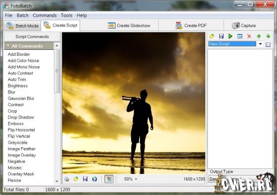 Мощный пакетный конвертер изображений. Программа позволит вам конвертировать файлы изображений с помощью скриптов, скрипт файл будет автоматически создан при редактировании изображений. Создавать сценарии, чтобы все ваши изображения имели те же аксессуары и коррективы, внесенные в них.