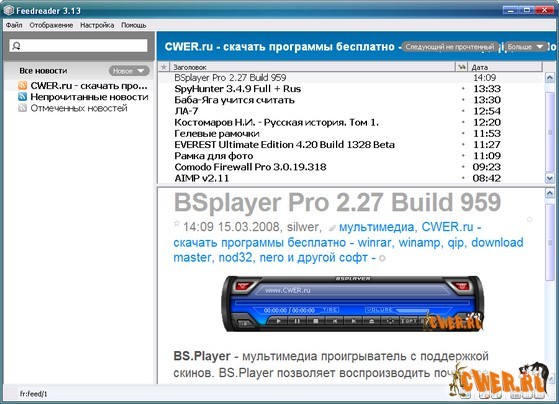 FeedReader 3.13 Final - новая доработанная версия агрегатора новостей (программы для получения новостей с веб-сайтов) в форматах RSS и ATOM...