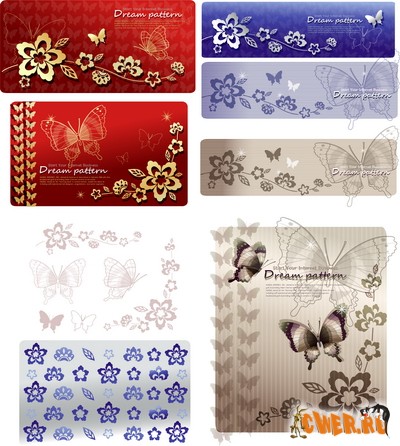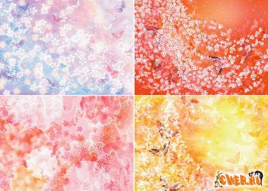 Коллекция фонов с цветами, бабочками, украшениями пригодятся любому дизайнеру. И не раз.