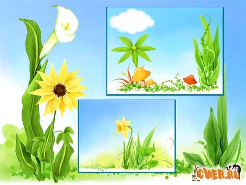 Два многослойных PSD исходника с цветочками и листочками для творчества.
