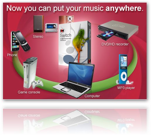 Switch Sound Format Converter - маленькая и простая в использовании программа для конвертирования музыкальных файлов. Достаточно выбрать исходную папку или файл для конвертирования, нужный формат и расположение папки в которую файл или папка с музыкальными файлами будет сконвертирована. Поддерживаются самые распространённые форматы файлов: wav, mp3, wma, mp2, m4a, ogg, avi, mid, flac, aac, mpga, dct, au, aiff, ogg, raw, msv, dvf, vox, cda, atrac, gsm, dss, sri, shn, dss, msv, wmv и многие другие.