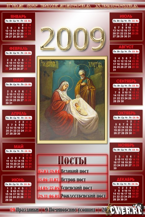 2 календаря на 2009 год в psd формате, слои скрыты, размер 2094x3142 пикс, А4 формат, возможность подстановки своего фото.
