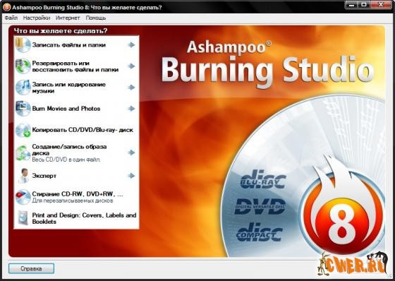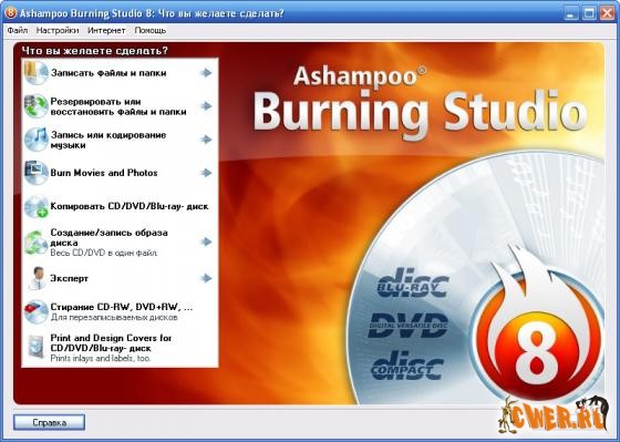 Ashampoo Burning Studio - пакет программ для записи CD-RW, DVD-RW, DVD+RW и Blu-ray дисков. Утилита позволяет создавать проекты и записывать CD/DVD (в том числе MP3-CD, VCD, S-VCD и Blu-ray).
