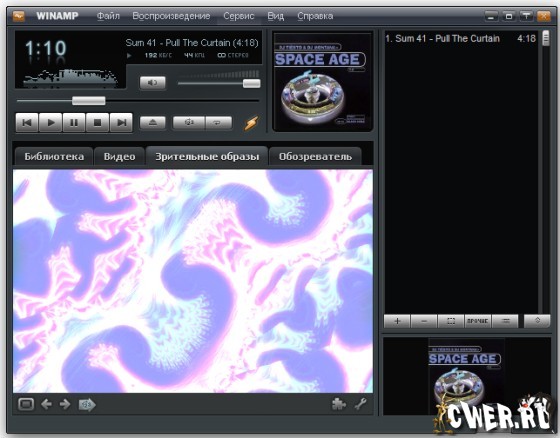 Winаmp - это один из самых популярных медиаплееров. Программа позволяет работать с файлами в форматах MP3, OGG, AAC, WAV, MOD, XM, S3M, IT, MIDI и т.д., поддерживает воспроизведение видео (AVI, ASF, MPEG, NSV), имеет большое количество настроек и параметров, обладает возможностью смены скинов, имеет хороший модуль визуализации, медиа-библиотеку и многое другое!