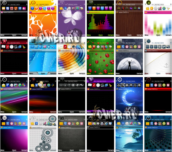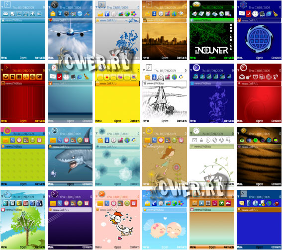 Темы для смартфонов Nokia под управлением Symbian OS 9.х: Nokia 3250, 5500 Sport, 5700, 6110 Navigator, 6120 c, 6121, 6220 classic, 6290, E50, E51, E60, E61, E61i, E62, E65, E70, E90, N71, N73, N75, N76, N77, N78, N79, N80, N81, N81 8GB, N82, N91, N92, N93, N93i, N95, N95 8GB и др. cwer.ws