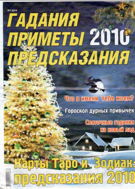 Новое периодическое издание, в котором вы найдете гороскоп на январь 2010 года; современные рождественские и крещенские гадания; приметы на Рождество и Новый год, о дороге, свадьбе, беременности; приметы и заговоры на деньги и богатство; прогноз Таро для всех знаков на весь год; гороскоп дурных привычек и астрологический рецепт: как найти общий язык с учителем.