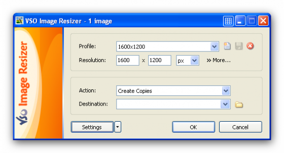 VSO Image Resizer - программа для изменения размеров цифровых картинок и изображений в различных графических форматах (на данный момент поддерживается работа с файлами JPEG, GIF, BMP, TIFF, CR2, NEF и т.д.). Также в утилите имеются возможности для компрессии файлов, конвертирования из одного формата в другой, экспорта, наложения прозрачных прозрачных и управления картинками. VSO Image Resizer интегрируется в оболочку Windows, может работать в пакетном режиме, обладает расширенными опциями настройки для продвинутых пользователей.