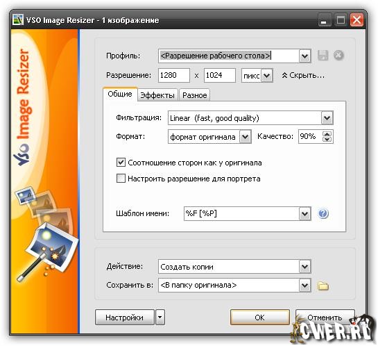 VSO Image Resizer - бесплатная программа для изменения размеров цифровых картинок и изображений в различных графических форматах (на данный момент поддерживается работа с файлами JPEG, GIF, BMP, TIFF, CR2, NEF и т.д.). Также в утилите имеются возможности для компрессии файлов, конвертирования из одного формата в другой, экспорта, наложения прозрачных прозрачных и управления картинками. VSO Image Resizer интегрируется в оболочку Windows, может работать в пакетном режиме, обладает расширенными опциями настройки для продвинутых пользователей.