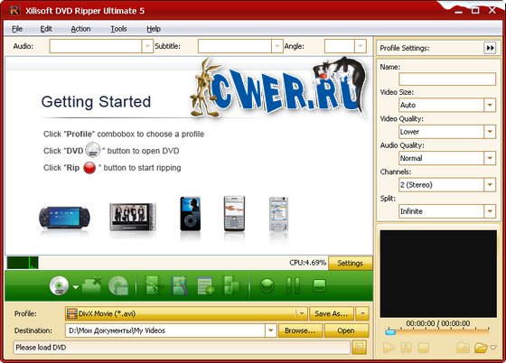 Xilisoft DVD Ripper Ultimate - поможет вам переписывать DVD в любые видео и аудио форматы: AVI, MPEG, WMV, DivX, MP4, H.264, RM, MOV, M4V, XviD, 3GP, MP3, WMA, WAV, RA, M4A, AAC, AC3, OGG и т.д. Xilisoft DVD Ripper Ultimate переписывает DVD, чтобы вы смогли их просматривать на портативных плеерах, например iPod, iPhone, PSP, Apple TV, мобильный телефон и т.д.