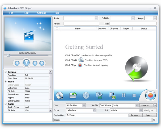 Joboshare DVD Ripper - это профессиональный DVD риппер, который может производить риппинг DVD в MP4, DVD в AVI, и почти все популярные видео форматы, включая AVI, MPEG, WMV, MP4, H.264/AVC, RM, MOV, XviD, 3GP, FLV, VOB, ASF, DV, MP3, WMA, WAV, RA, M4A, AAC, AC3, OGG, и т.д. с высоким DVD риппинга скоростью и лучшим качеством.