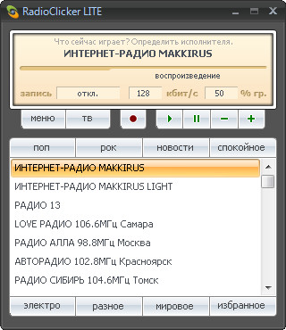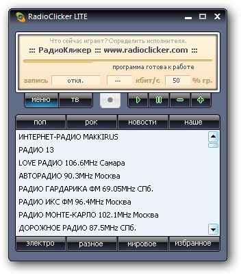 Вышла новая версия RadioClicker Lite - программы для прослушивания радио на компьютере через Интернет. С помощью RadioClicker можно также просматривать русское интернет-телевидение. В программе собранны почти все РАДИО и ТВ каналы вещающие на русском языке.