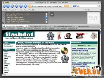Обновился Flock - веб-браузер на базе Firefox с поддержкой самых передовых технологий - RSS, блоги, обмен фотографиями через он-лайн службу Flickr, служба закладок (возможность хранить закладки на сервере и делать их доступными другим пользователям) и многое другое...