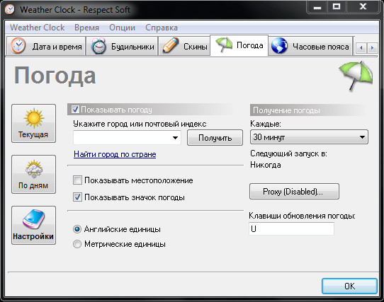 Weather Clock - программа, показывающая в системном трее точное время, которое можно синхронизировать с серверами точного времени и прогноз погоды в выбранном вами месте, а также температуру, выбранную погодную станцию и советы (какую выбрать одежду человеку, чтобы соответствовать погодным условиям). Кроме того, программа предоставляет возможность устанавливать будильники на выбранную вами дату и время.