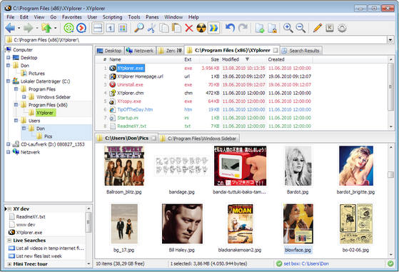 XYPlorer - расширенный файловый менеджер, ориентированный на пользователей, которые хотят найти достойную замену стандартному проводнику Windows. Программа обладает большой функциональностью и множеством дополнительных возможностей. Основной особенностью этой утилиты является возможность открытия каждого окна в новой вкладке основного окна данной программы. В программе имеется мощный поиск файлов, универсальные средства предварительного просмотра и хорошо настраиваемый интерфейс. Также, стоит отметить, что программа не требует обязательной установки на компьютер, тем самым позволяя запускаться с любого цифрового носителя, например, с USB флэш диска.