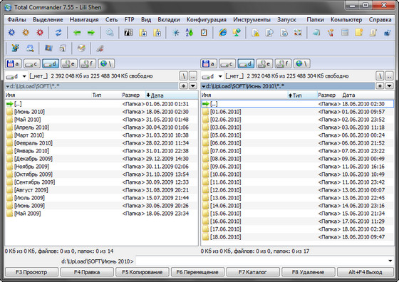 Total Commander - популярный файловый менеджер с практически всеми необходимыми для таких программ функциями. Кроме всех функциональностей, характерных для файловых менеджеров, в Total Commander встроены очень удобные просмотрщики для мультимедиа и графических файлов, распаковщики ZIP, ARJ, LZH, RAR, UC2, TAR, GZ, CAB, ACE и дополнительные dll для других архивных файлов; встроенный ftp-клиент - вообще просто прелесть: можно скачивать/закачивать файлы в несколько потоков, есть докачка, поддержка www-прокси при работе с ftp и есть даже такая функция, как подключение-скачивание-отключение в заданное время к заданному ftp. Не будут лишними и такие функции, как UUE/MIME/XXE кодирование/декодирование и разрезка/склейка длинных файлов, а также множество других функций, крайне необходимых для работы с файлами.