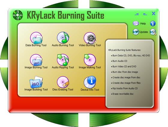 Burning Suite это полнофункциональное решение для записи и копирования CD, DVD, Blu-Ray, HD DVD дисков. С помощью программы вы сможете создавать и записывать любые диски – от обычных аудио CD до High-Definition видео.