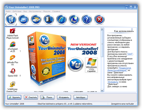 Your Uninstaller! - один из лучших деинсталяторов приложений. Эту сборку сделал вдогонку demiancz. В ней русский интерфейс отображается КОРРЕКТНО!