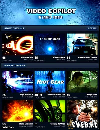 Видео уроки Andrew Kramer, рассчитаны на новичков в видеомонтаже. В этой серии уроков вы обучитесь всему, что вам потребуется для того, чтобы начать пользоваться After Effects прямо сегодня. Это не обзор программы, это реальные уроки, которые покрывают такие темы, как Motion Tracking, Color Keying и даже 3D-интеграцию. After Effects дает вам возможность создавать крутейшие визуальные эффекты и графику в видеофайлах. Эти навыки сделают вас действительно ценным кадром для будущего работодателя. Практически все уроки подойдут как к After Effects CS3, так и к After Effects 6.5 и 7.