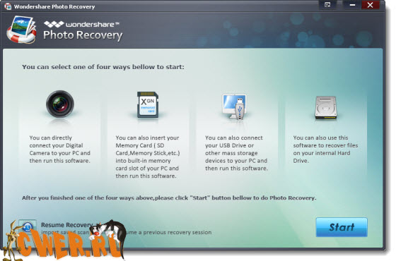 Wondershare Photo Recovery - программа для восстановления утерянных или поврежденных фотографий, видео и музыки с компьютера, фотоаппарата, USB флеш карты, SD карты и других устройств. Если вы случайно удалили файлы, отформатировали диск или потеряли все фотографии вследствие поломки компьютера - Wondershare Photo Recovery поможет восстановить их в несколько щелчков мышки.