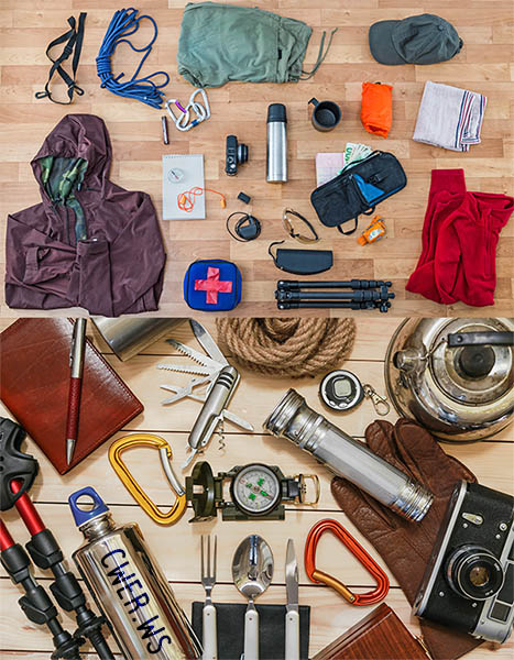 Фото клипарт на тему необходимых инструментов для путешествий или кемпинга. Нужно взять с собой множество необходимых вещей, дабы выжить в суровых условиях и не замерзнуть. Графика поможет осуществить твою мечту.