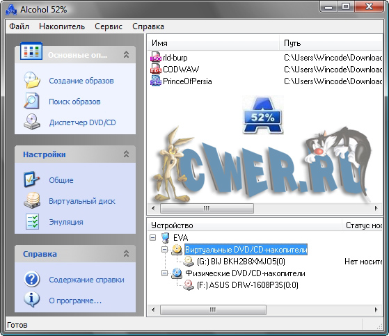 Alcohol 52% представляет собой приложение-эмулятор CD/DVD-приводов с функциями обхода защиты от копирования (поддерживаются практически все используемые на сегодняшний день решения, включая StarForce). После установки в системе появляется дополнительный виртуальный привод (до 6), вместо (31) у Alcohol 120%, к которому можно подключать образы дисков различных форматов (поддерживается работа с MDS, BWT, CCD, CUE, CDI, PDI, NRG и ISO)...