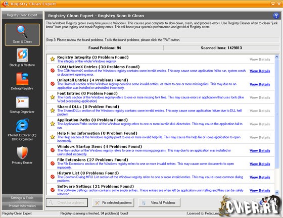 Registry Clean Expert - неплохая программа для чистки реестра, в результате чего повышается быстродействие компьютера. Registry Clean Expert сканирует реестр Windows и ищет устаревшие или ошибочные записи, которые потом исправляет. Кроме этого, программа позволяет создавать резервные копии системного реестра, а также настраивать программы, запускаемые при загрузке операционной системы.
