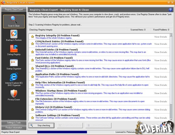 Registry Clean Expert - программа для сканирования реестра на предмет неправильной или устаревшей информации. Благодаря изменению таких данных в реестре система начинает работать быстрее и без ошибок. Программа имеет опцию резервного копирования и восстановления реестра на случай, если система даст сбой. Кроме этого, используя Registry Clean Expert, вы можете управлять приложениями, которые запускаются вместе с Windows и Internet Explorer. Также утилита включает в себя модуль поиска "шпионских" модулей.