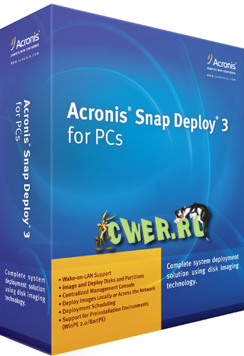 Acronis Snap Deploy 3 - это комплексное решение по развертыванию компьютерных систем, позволяющее быстро и легко развертывать портативные и настольные персональные компьютеры. Все организации частного и государственного сектора (компании, школы, федеральные / государственные / местные правительства и т.д.) сталкиваются с растущими сложностями при конфигурировании и развертывании новых персональных компьютеров и рабочих станций в распределенных средах. Использование решения по развертыванию новых систем, позволяющего использовать стандартную конфигурацию для всех новых машин, существенно снизит расходы на поддержку компьютерных систем. При помощи технологии создания образов дисков компании "Acronis", удостоенной многих наград, утилита Snap Deploy создает точный образ стандартной конфигурации, включая операционную систему, файлы конфигурации и все приложения. Этот образ может быть развернут одновременно на нескольких системах, что делает Acronis Snap Deploy идеальным решением для быстрой автоматической установки систем.