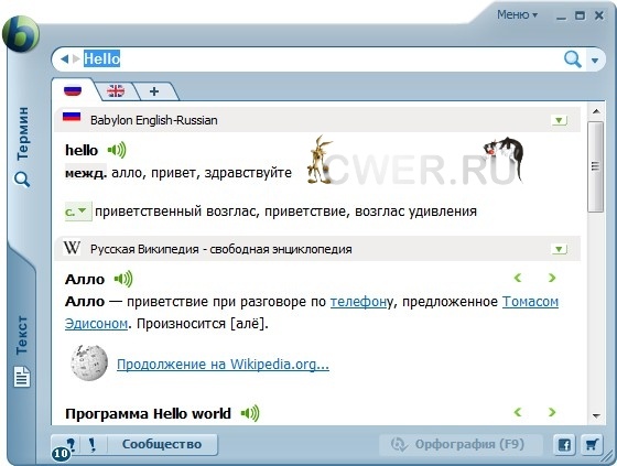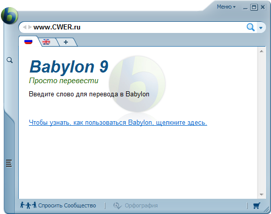 Babylon - словарь, позволяющий переводить слова с одного языка на другой, который можно бесплатно скачать на cwer.ws. Работать со словарем очень просто - после нажатия кнопкой мыши на интересующее слово появляется окно с его переводом. Кроме перевода слов, программа включает в себя английские тематические и толковые словари, а также имеет функции конвертации валют на текущую дату и перевода мер из одной системы в другую.