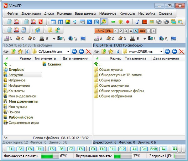 ViewFD - очень легкий, компактный файловый менеджер, по возможностям вполне сравнимый с Total Commander, который можно бесплатно скачать на cwer.ws. ViewFD содержит встроенные средства для просмотра файлов, понимает распространенные текстовые форматы, среди которых есть RTF. Присутствует также просмотрщик изображений, который обладает способностью их редактирования.