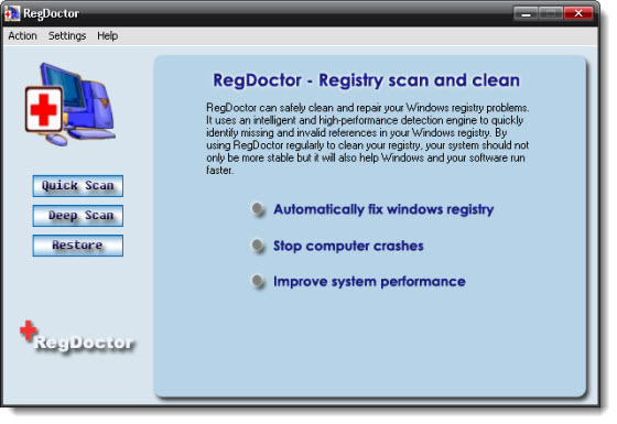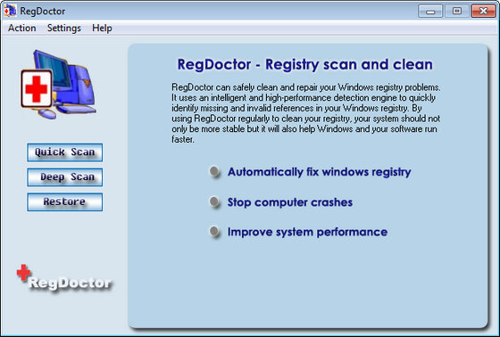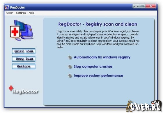 RegDoctor - программа предназначена для исправления ошибок в реестре. Дает возможность устранить такие часто возникающие проблемы, как сообщения об ошибках, вылет операционной системы и многие другие. Не забыли разработчики и о функции восстановления, которая поможет вернуть систему в исходное состояние, если действия, выполненные при помощи программы, приведут к нежелательным последствиям.
