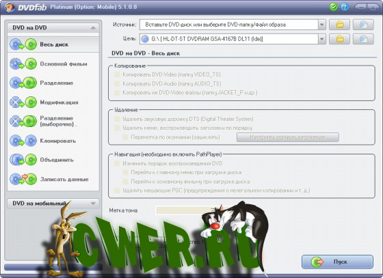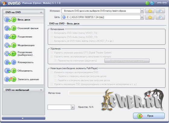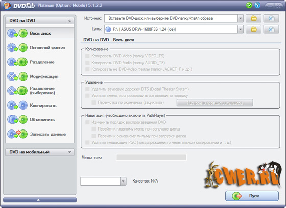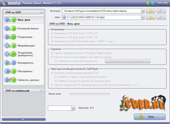 - Копирование DVD без потери качества