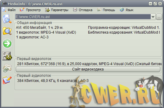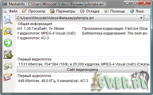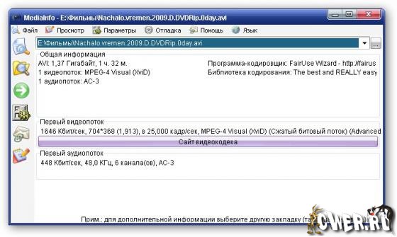 MediaInfo - программа, которая предоставляет подробную информацию об аудио и видео файлах. MediaInfo показывает, каким кодеком сжато видео, с каким битрейтом, какое в нем соотношение сторон и количество кадров в секунду. Для аудиофайла MediaInfo показывает используемый кодек, битрейт, язык, количество каналов, частоту выборки и т.д. Показав сведения о файле, программа тут же посоветует, где можно скачать недостающий кодек или проигрыватель.