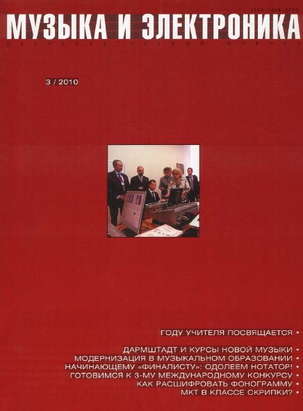 Образовательно-популярный журнал, выходит с 2004 г. 4 раза в год. Цель журнала – способствовать освоению новых музыкальных технологий в сфере массового и специального музыкального образования, информационное оснащение и координация музыкально-электронного образовательного движения в стране (фестивали, конкурсы, концерты, конференции, семинары, выставки, программы и т.п.).
