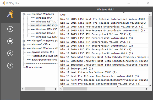 Программа PIDKey Lite предназначена для просмотра, обновления и сохранения в базе информации о ключах для продуктов M$.