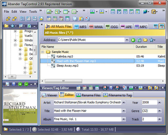 Abander TagControl - легкий в использовании менеджер музыкальной коллекции и редактор тегов музыкальных файлов в различных форматах. Вы сможете редактировать теги как вручную, так и автоматически, скачивая информацию с баз данных Amazon и FreeBD. Программа позволяет с легкостью организовывать музыкальную коллекцию и полностью заполнять информацию в тегах, предоставляя для этого все необходимые инструменты.