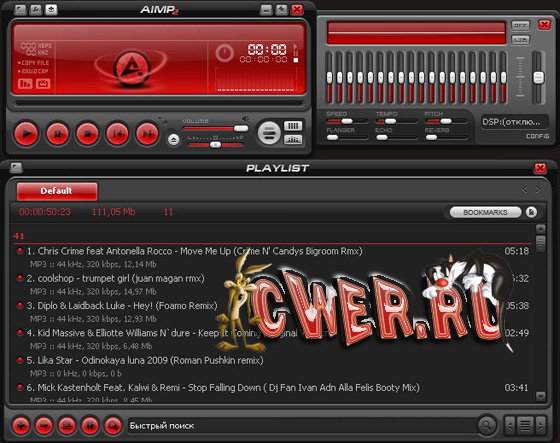 AIMP Audio Player - мощный аудиоплеер. Программа имеет чувствительный 18-ти полосный эквалайзер, мультиязычную поддержку, возможность настройки глобальных и локальных горячих клавиш, функцию вкл/выкл компьютера в заданное время или по окончанию плейлиста, потребляет минимум системных ресурсов, поддерживает множество форматов. Аудиоплеер AIMP может быть настроен индивидуально, программа отличается большой гибкостью. С помощью плагинов можно расширять возможности стандартного пакета программы: добавлять новые утилиты и изменять уже имеющиеся. Интернет-радио. Создание закладок и очереди воспроизведения.