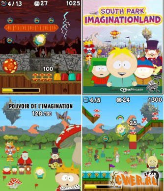 Игра для мобильных телефонов. Продолжение похождений персонажей знаменитого мультсериала Южный парк. Размеры экранов: 128х128, 128х160, 176х208, 176х220, 240х320, 320х240, 325х416.