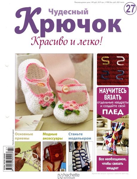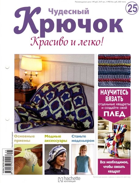 Коллекция «Чудесный крючок. Красиво и легко!» — это простой и доступный способ освоить искусство вязания крючком. С каждым номером вы сможете научиться различным способам вязания крючком, а также познакомитесь с новым узором, выполнение которого представлено пошагово с помощью простых объяснений и фотографий. В каждом выпуске предлагаются прекрасные модели для вас и вашего дома. Откройте в себе талант и познайте радость творчества! Регулярно получая описания простых в исполнении моделей, вы соберете собственную коллекцию.