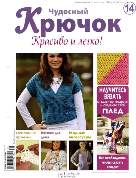 Коллекция «Чудесный крючок. Красиво и легко!» — это простой и доступный способ освоить искусство вязания крючком. С каждым номером вы сможете научиться различным способам вязания крючком, а также познакомитесь с новым узором, выполнение которого представлено пошагово с помощью простых объяснений и фотографий. В каждом выпуске предлагаются прекрасные модели для вас и вашего дома. Откройте в себе талант и познайте радость творчества! Регулярно получая описания простых в исполнении моделей, вы соберете собственную коллекцию.