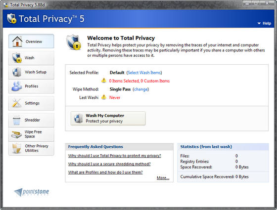 Total Privacy – надежное решение для удаления информации и защиты от онлайновых и оффлайновых угроз вашей безопасности. Программа использует самые надежные современные методы удаления информации чтобы ваш компьютер оставался именно вашим – личным. Также это безопасный и простой в использовании инструмент защиты Windows, который надежно удаляет историю посещенных сайтов, действия операционной системы и историю запущенных программ, которая хранится на вашем компьютере. Программа также убедится в том, чтобы предварительно удаленные файлы было невозможно восстановить. Поддерживает все браузеры и более 450 сторонних приложений.