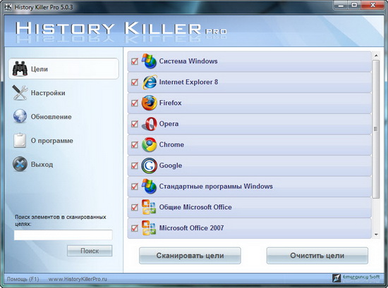 History Killer Pro - комплексное программное обеспечение для решения всех проблем связанных с удалением мусора с компьютера и защиты информации. Программа обеспечит вашу приватность как в интернете так и вне ее, безвозвратно стирая всю информацию которая может подвергнуть риску вашу конфиденциальность.